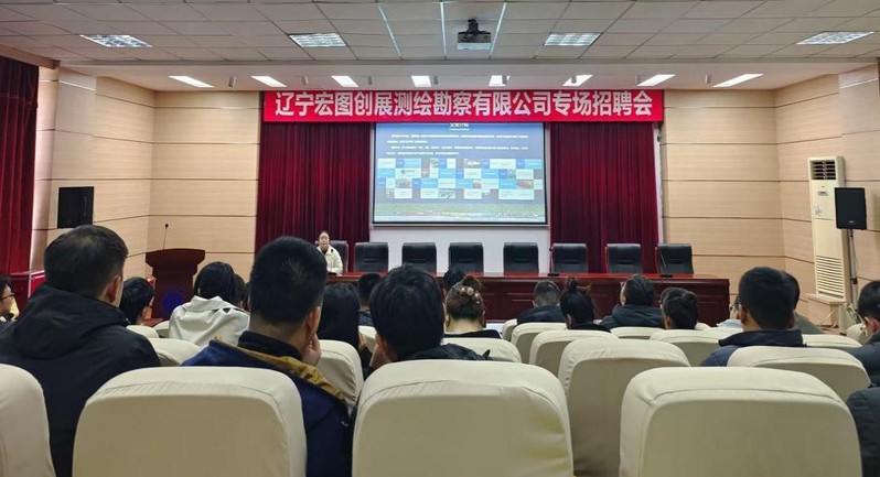 招聘会上,辽宁宏图创展测绘勘察有限公司人力资源部负责人通过PPT宣讲,详细介绍了企业发展历程、核心业务及岗位需求,重点解读了多个目标岗位的职责、专业技能要求及薪资福利体系。随后进入互动交流环节,企业代表针对毕业生关心的问题逐一解答。